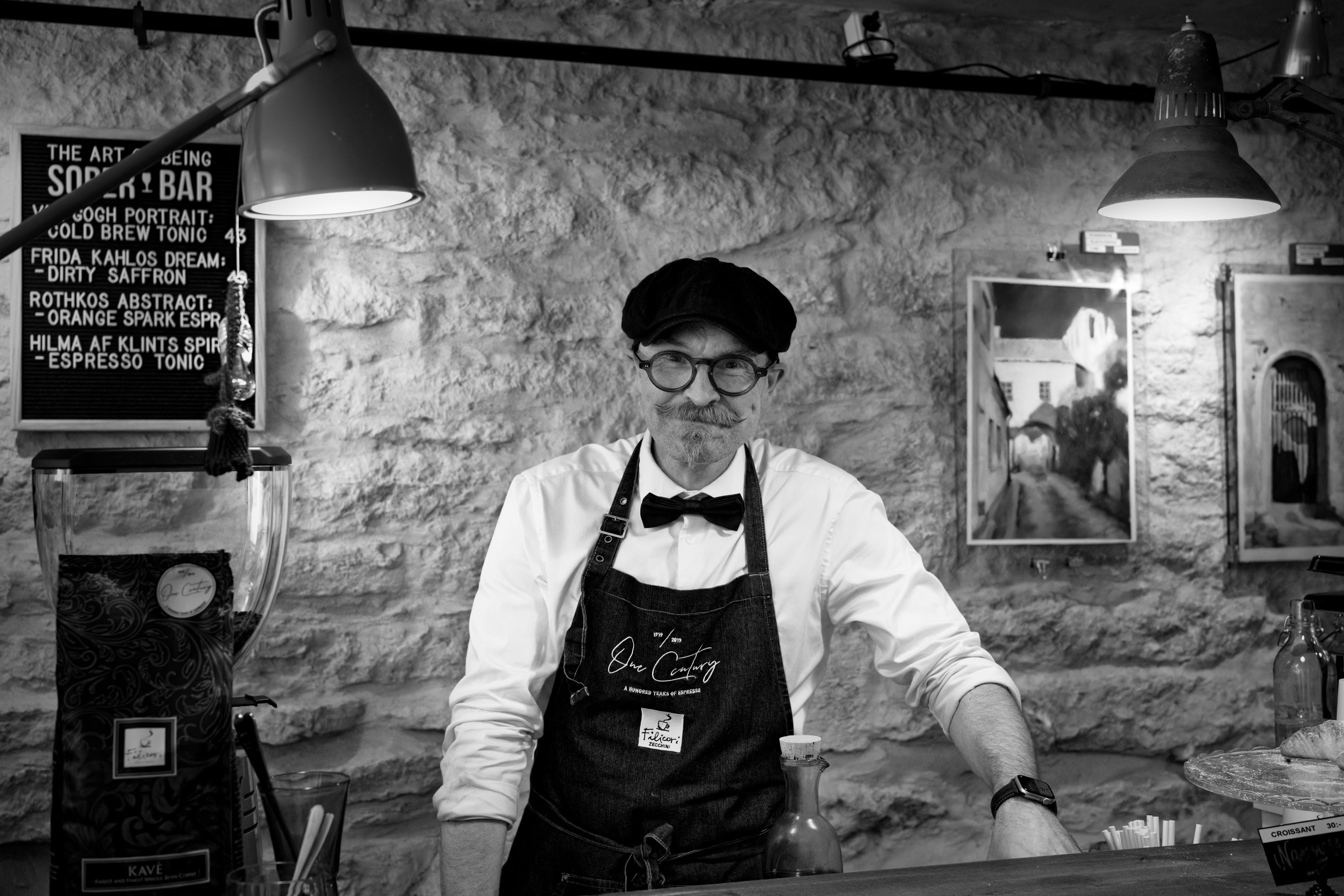 (Pssst: I admit that I do not take or post many photos of random people. I am also not one to find a scene and just wait for that perfect person to complete it before I shoot. I am, instead, the type that, if I do come across an interesting person, group, or situation, I attempt to power on my camera, compose, and shoot in that moment. I most often miss my opportunity. Partly because I tend to hesitate to take the candid shot and, mostly, because I wimp out. Why am I telling you this? You may have noticed I included two different shots of a barista in this post and wanted to share the backstory. On one of the days while wandering in Visy’s old town, I popped into an art cafe and ordered my drink from a uniquely dapper dood, complete with natty moustaches and fun spectacles. He totally completed the vibe of the cafe. I sooooo wanted to take a pic of him. Alas, I did not. I chickened out. Sigh. He had been worth a capture. I mentally kicked myself for being too scared to secure an image. A couple of days later, we were back wandering in Visby and somehow found that same little street with the same art cafe. I coaxed my better half to go and order another latte, never mind we had already patronised a cafe a bit earlier — he always needs a second coffee. We entered. I hemmed and hawed with myself but finally plucked up the courage to ask the barista if I could take a pic of him. He was totally fine with that. I waited a bit until he was working on the brew and shot the image you saw first in this post. Well, as it happens, the guy was actually disappointed that I had waited for him to be busy and looking down when I clicked my shot so I offered to take another with him smiling as he liked. Presto-change-o and we have the second image! I will end by saying that it is very rare for me to harness the chutzpah to ask for a shot but I was so happy I had a second chance in to do so in Visby.)